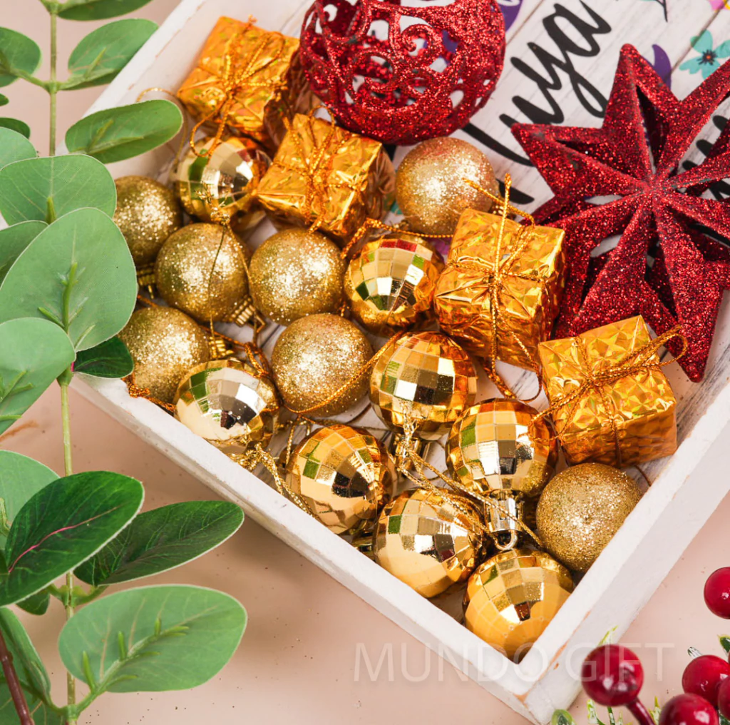 DECORACIONES DE NAVIDAD: COLORES HERMOSOS Y BRILLANTES, ASPECTO PEQUEÑO Y EXQUISITO, PESO LIGERO. EL PAQUETE VINE 16 BOLITAS DE 3CM, 4 ADORNOS DE 3CM