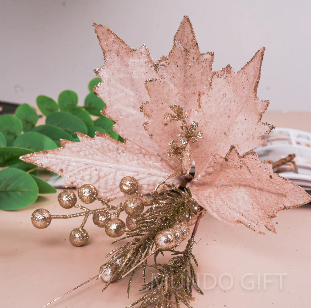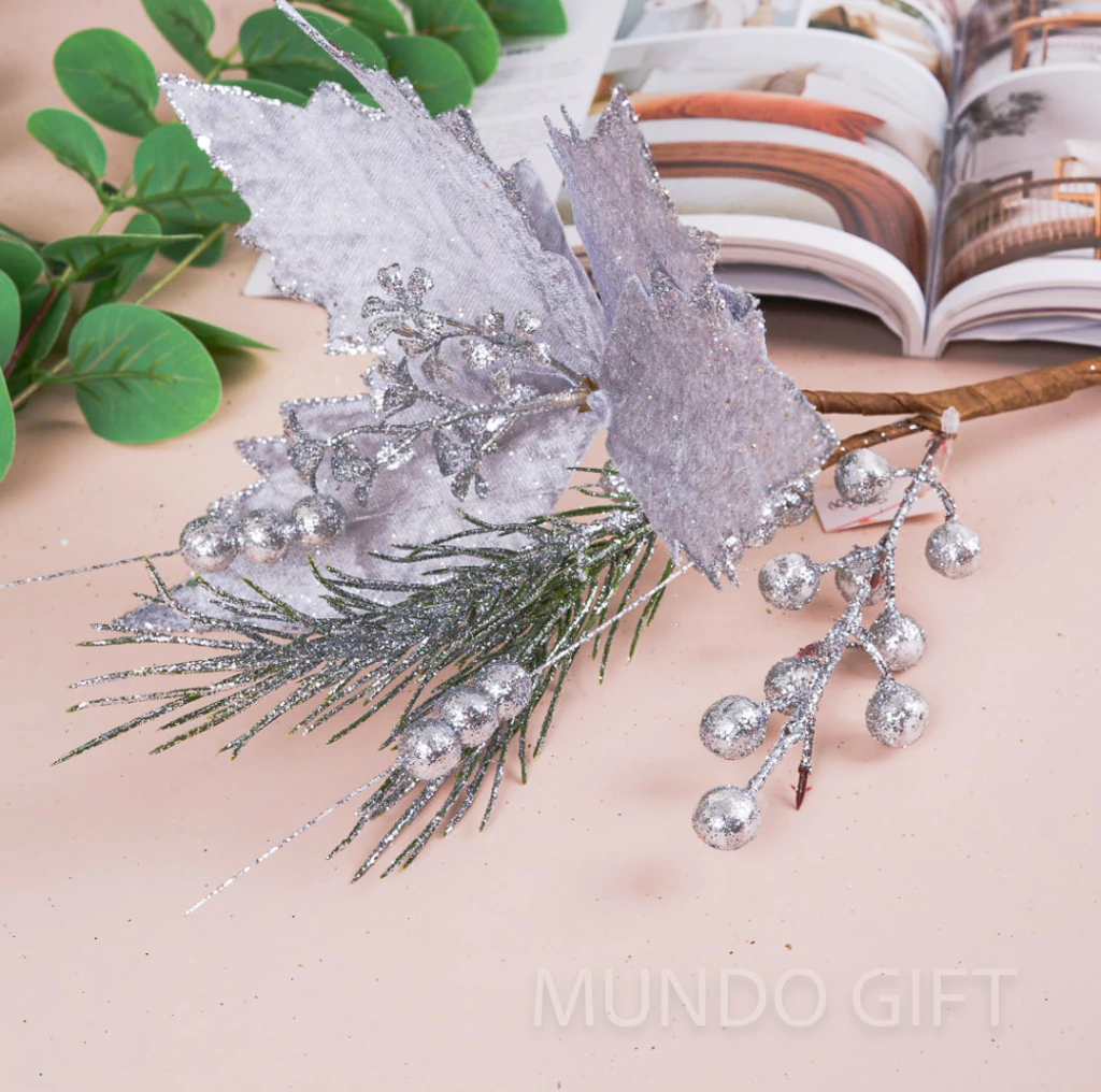 Disfruta feliz: las hermosas flores artificiales navideñas te hacen feliz. Agregue brillo a cualquier habitación, para guirnaldas navideñas, coronas, centros de mesa navideños, arreglos florales navideños, decoraciones de mesa, envoltura de regalos.