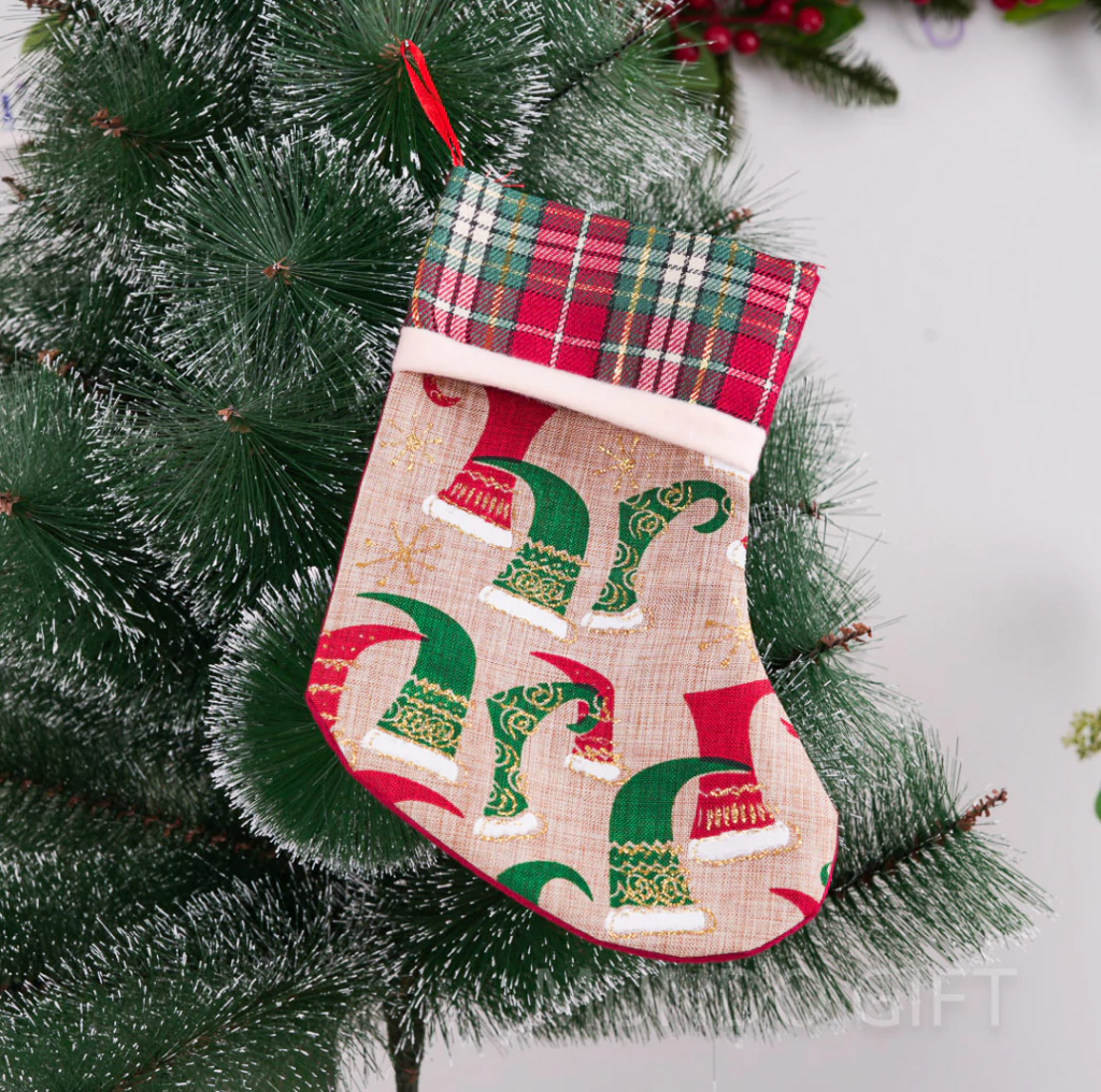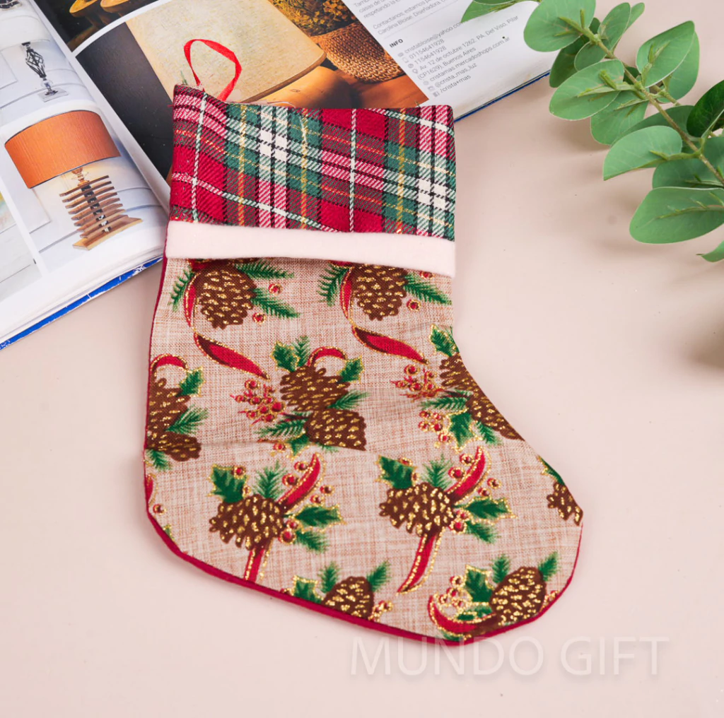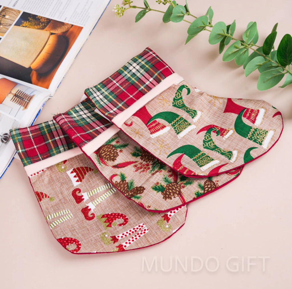 botas navideñas estampadas, perfectas para decorar tu hogar con estilo festivo. Resistentes y coloridas, ideales para colgar y organizar pequeños regalos o detalles en Navidad.