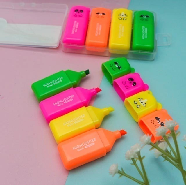 RESALTADOR PARA SUBRALLAR EN COLOR FLUOR X 4 UNIDADES CON ESTUCHE