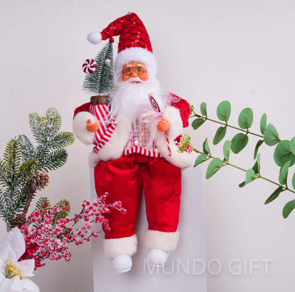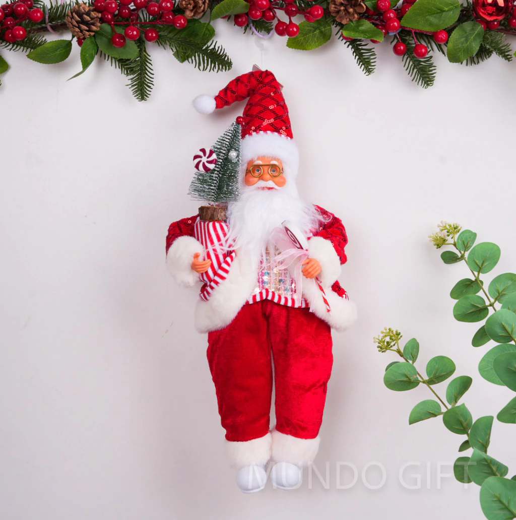 Este muñeco de Papá Noel es perfecto para decorar tu hogar en Navidad. Su diseño festivo y sus materiales de calidad lo hacen un adorno encantador. - Detalles bordados en el traje. - Barba y pelo blancos y esponjosos.