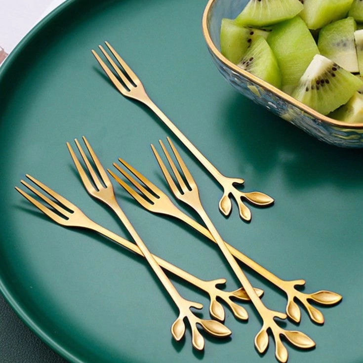 Diseño: elegante diseño en forma de hoja con superficie pulida con espejo liso, diseño de una sola pieza, fácil de limpiar sin suciedad. La cubertería moderna combinaría bien con sus cubiertos existentes y elevaría sus comidas diarias a una excelente experiencia de comedor.