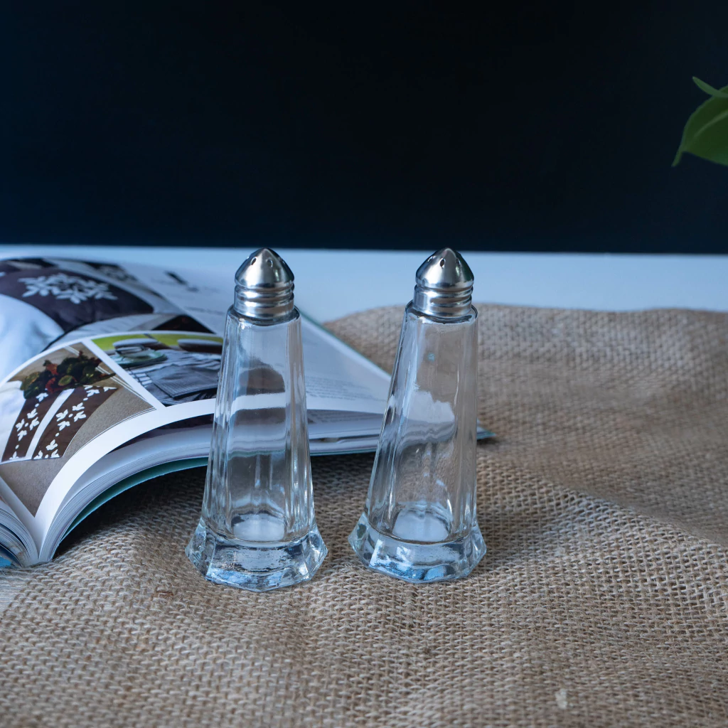 EL SALERO CON HERMOSO ESTILO SE HECHO DE VDRIO Y ACERO, ES IDEAL PAR SAL, PIMENTA O OTRO CONTIMENTO EN POLVO