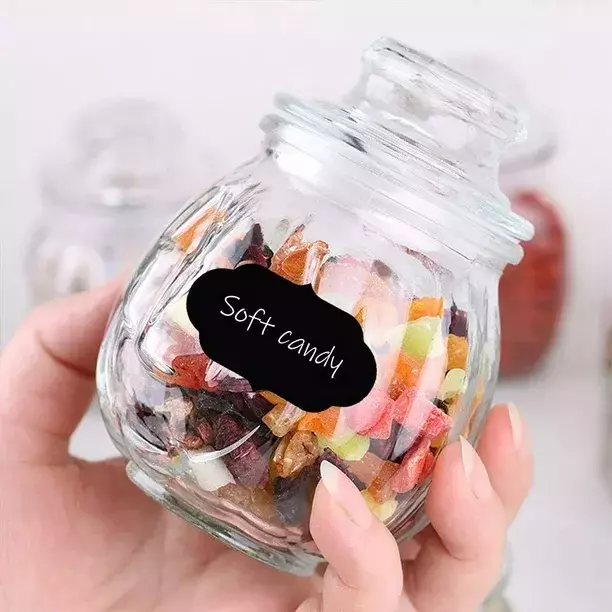 MATERIAL DE PRIMERA CALIDAD: etiquetas de pizarra impermeables de alta calidad hechas de material de vinilo de gran durabilidad. Textura mate con una limpieza nítida. La superficie de escritura es lisa.